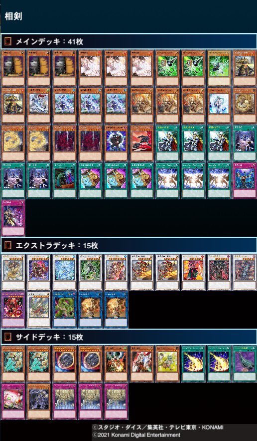 “U20ネクストプレイ杯ベスト4デッキレシピになります! 1位【天威相剣】 2位【ドライトロン】 3位【エルドリッチ】 4位【相剣】 です!!!!”