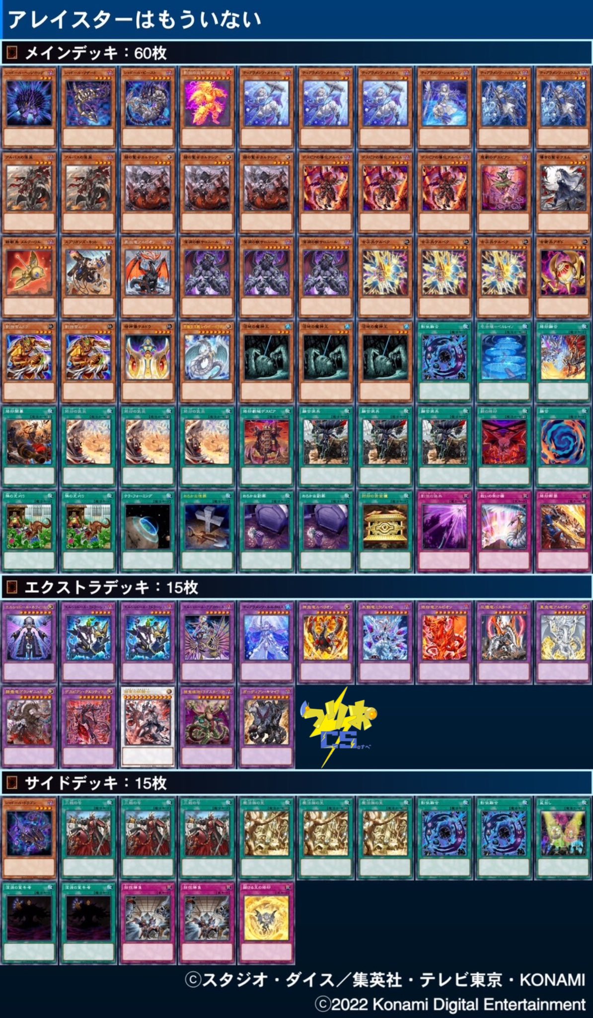 “第12回つりおCS@ナベ個人戦(W杯形式) 優勝:ライト選手(@rai_10y ) 使用デッキ:ティアラメンツ 準優勝:kigremo選手(@kigremo ) 使用デッキ:ピュアリィ 3位:くまけん選手(@kumaken_perform ) 使用デッキ:テ