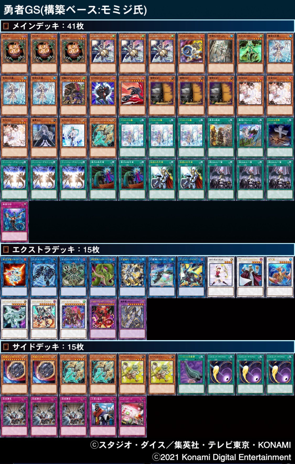 “第53回ネクストプレイ杯ベスト4デッキレシピになります! 1位【天威勇者】 2位【天威勇者】 3位【勇者GS】 4位【LL】 です! 勇者まみれ!! #ネクストプレイ”