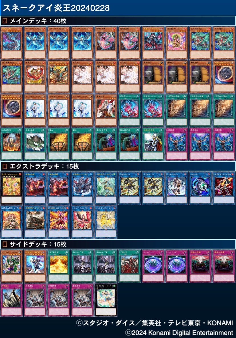 第169回ネクストプレイ杯ベスト4のデッキレシピになります! 1位【スネークアイ】『ギャグナ』 @Gyaguna3966 2位【霊獣】『カチャカチャ』 @katyakatya1357 3位【炎王】『やまぴん』 @yamapin37 4位【炎