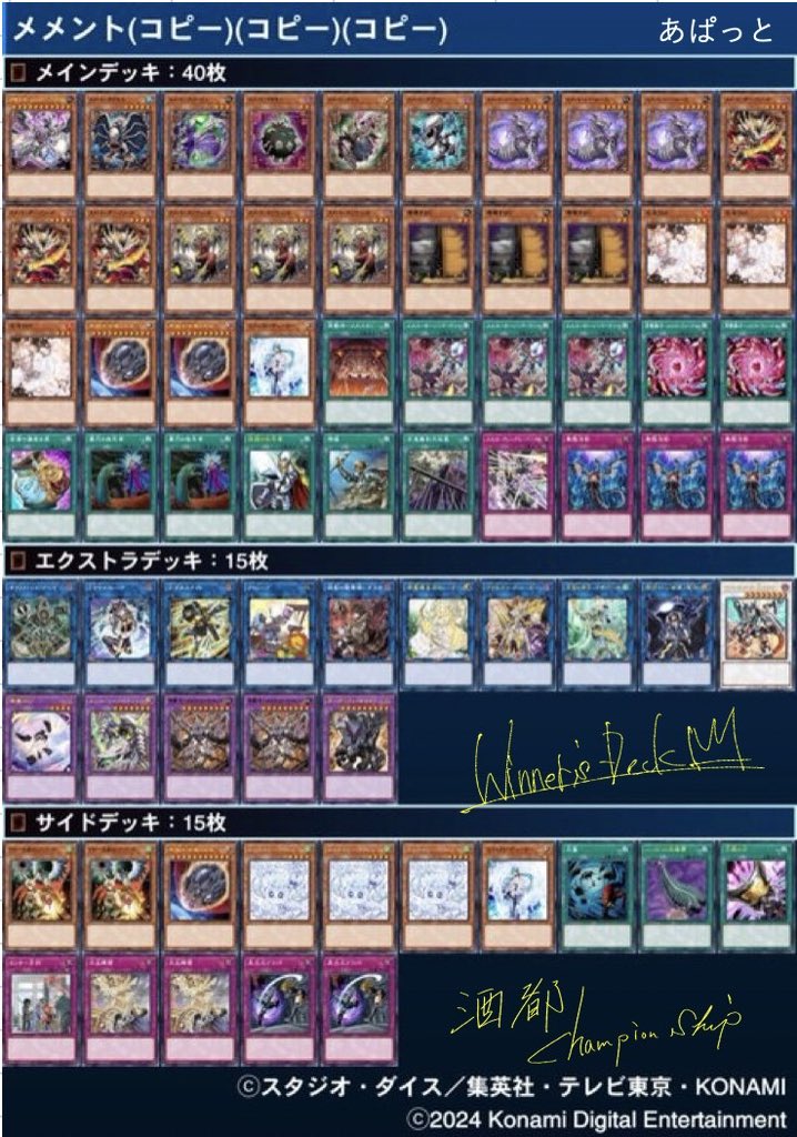 「第17回酒都CS (2人チーム戦)」 上位入賞者デッキレシピ 参加者数…32チーム・64名 優勝チーム 「マナドゥム・クシャトリラ」 りぃん 【ユベル】 あぱっと【メメント】 ※ 敬称略