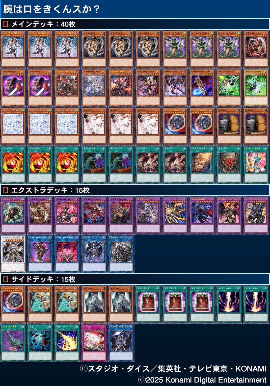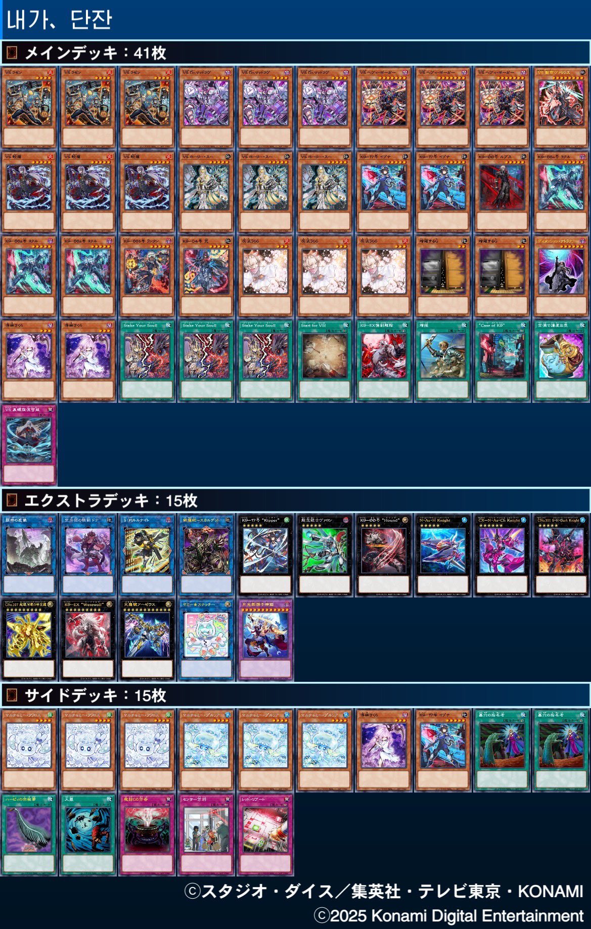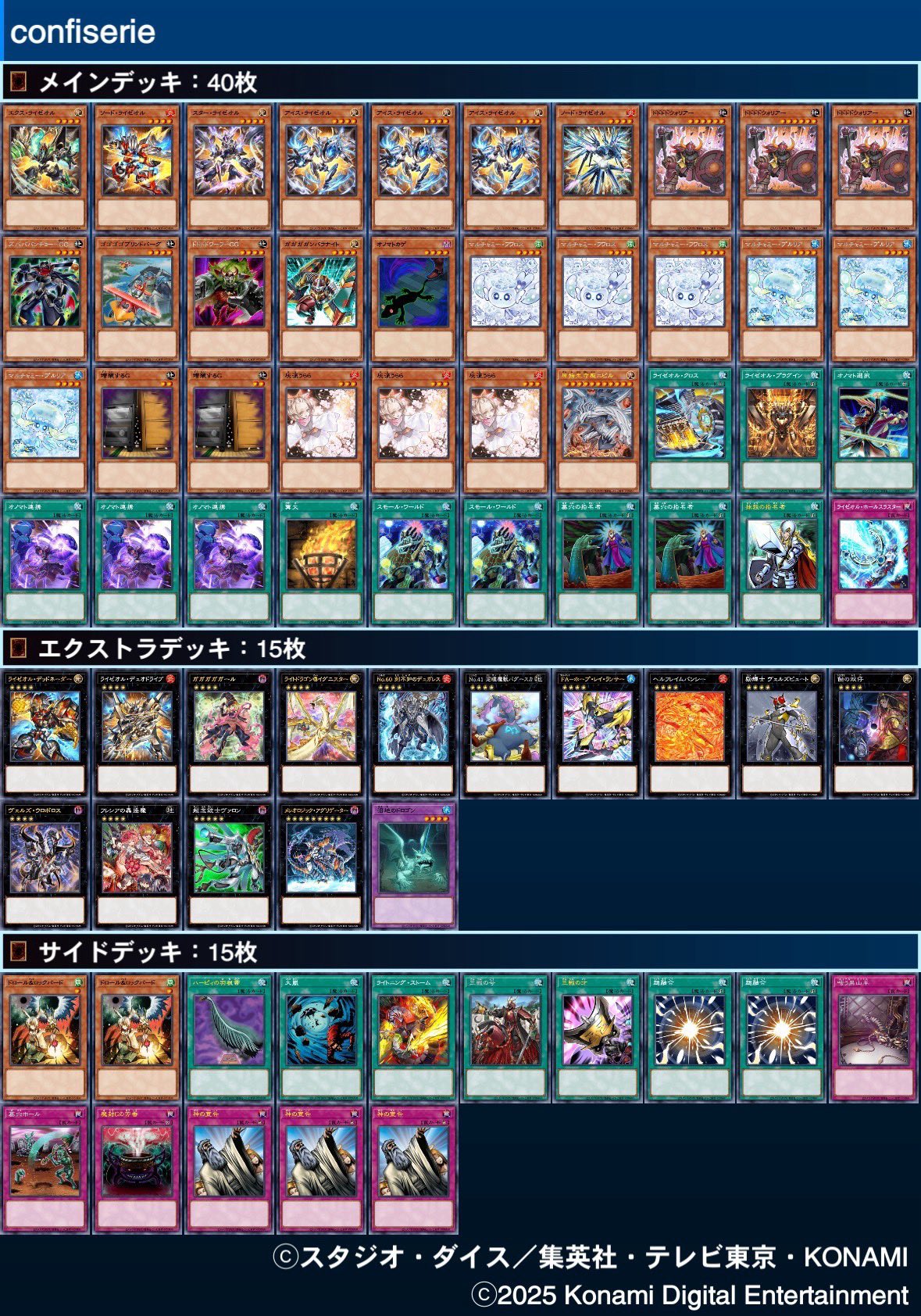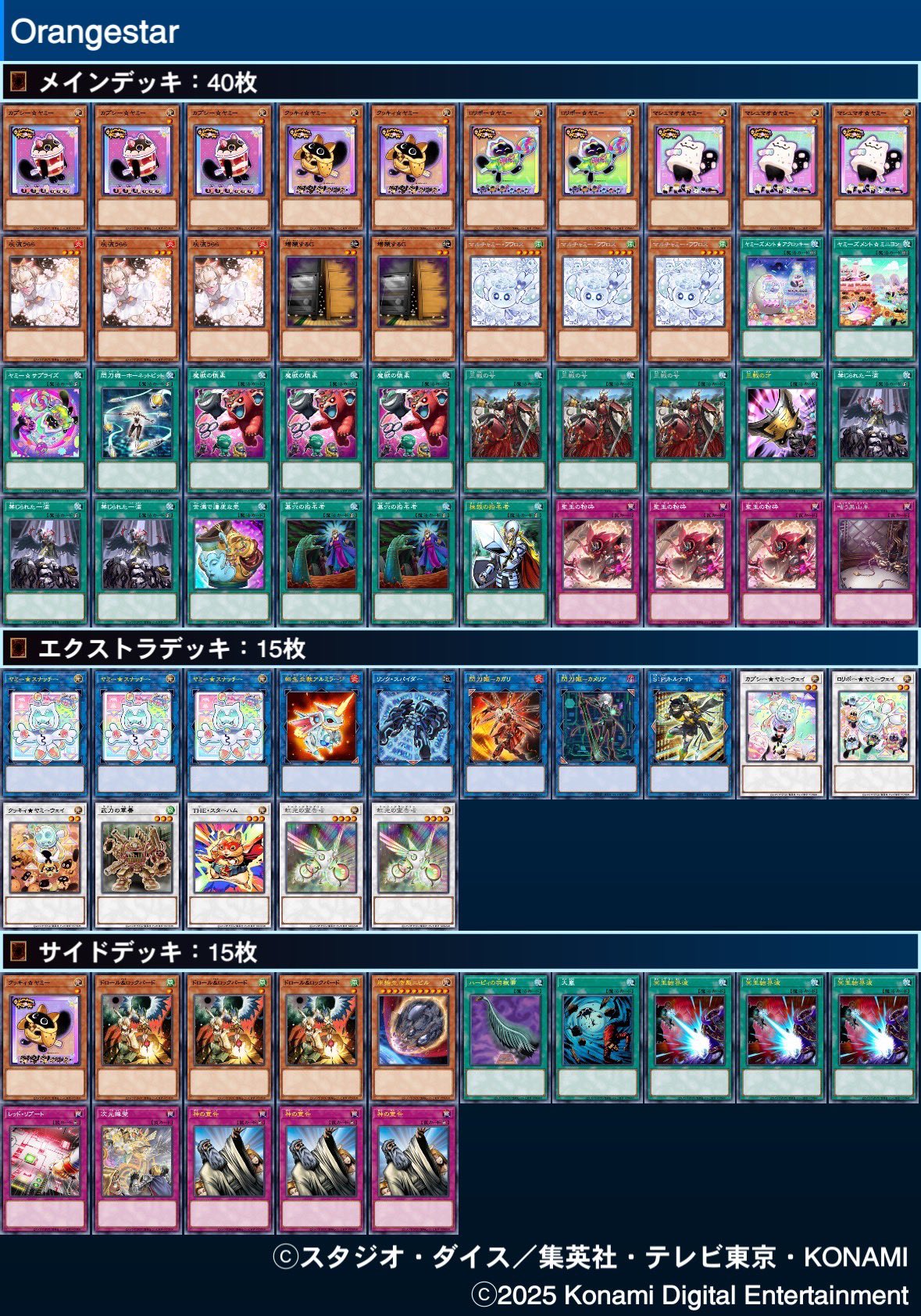 第233回ネクストプレイ杯ベスト4のデッキレシピになります! 1位【단잔】『VS』 2位【ぱんくん】『ライゼオル』 @pankun_YP 3位【じっぽ】『ヤミー』 @Aquacrew_YP 4位【ムラキ】『キマイラ』 @MURAKI